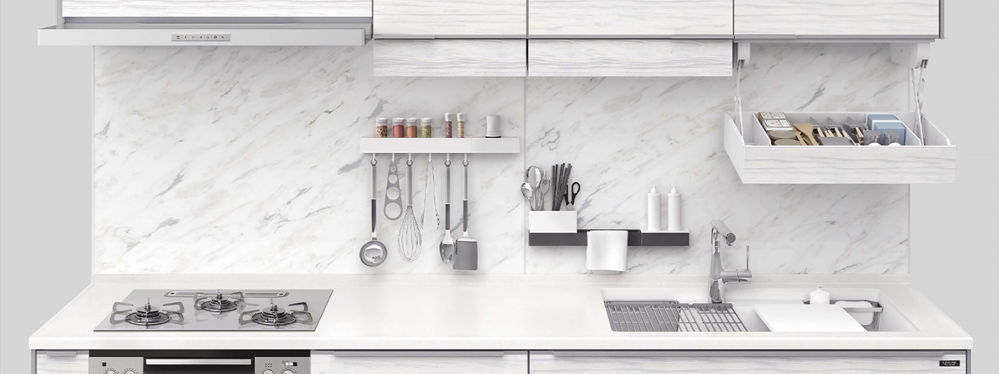調味料、刀具、紙巾固定在視線高度