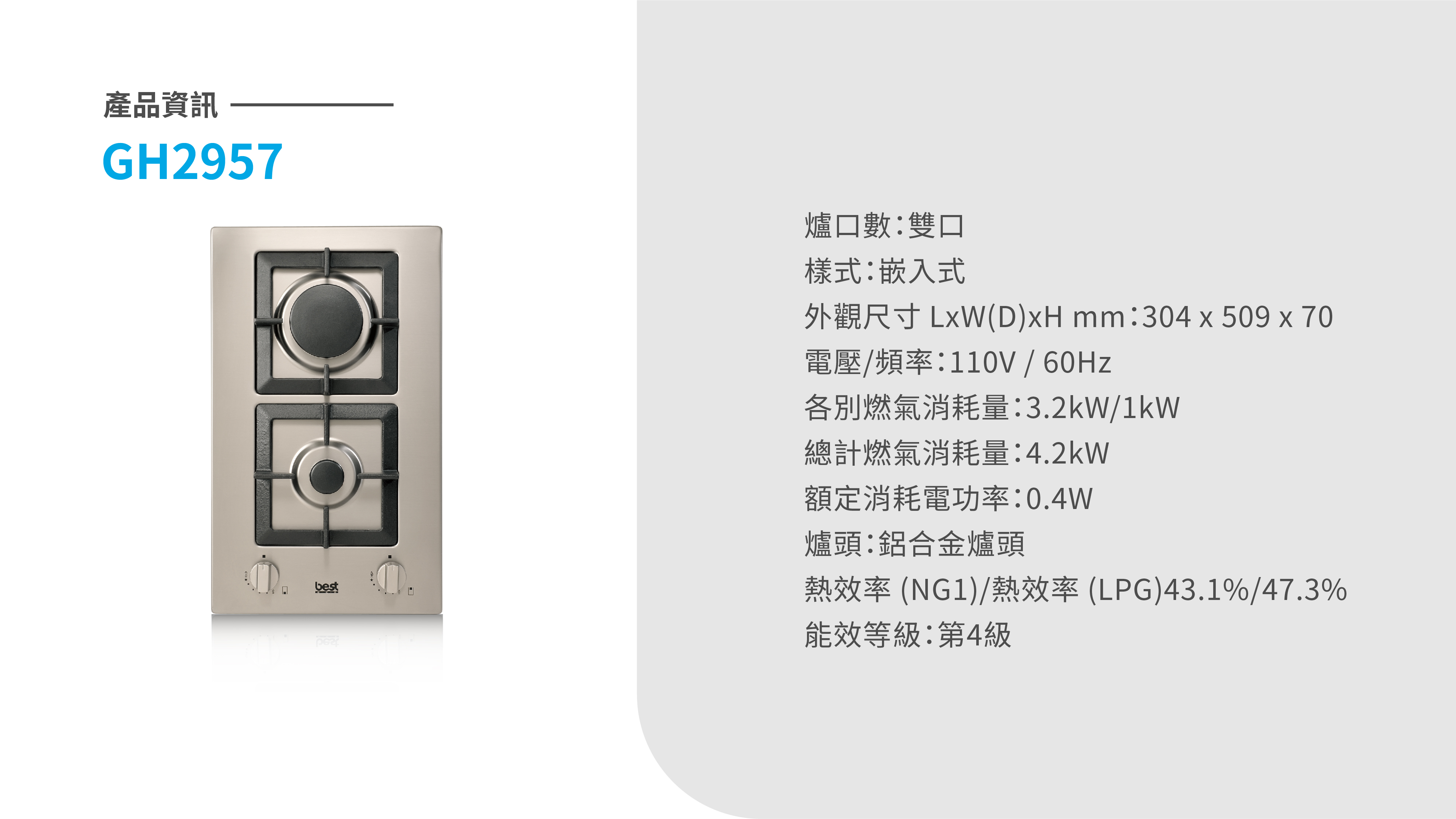 不鏽鋼雙口高效能瓦斯爐GH2957