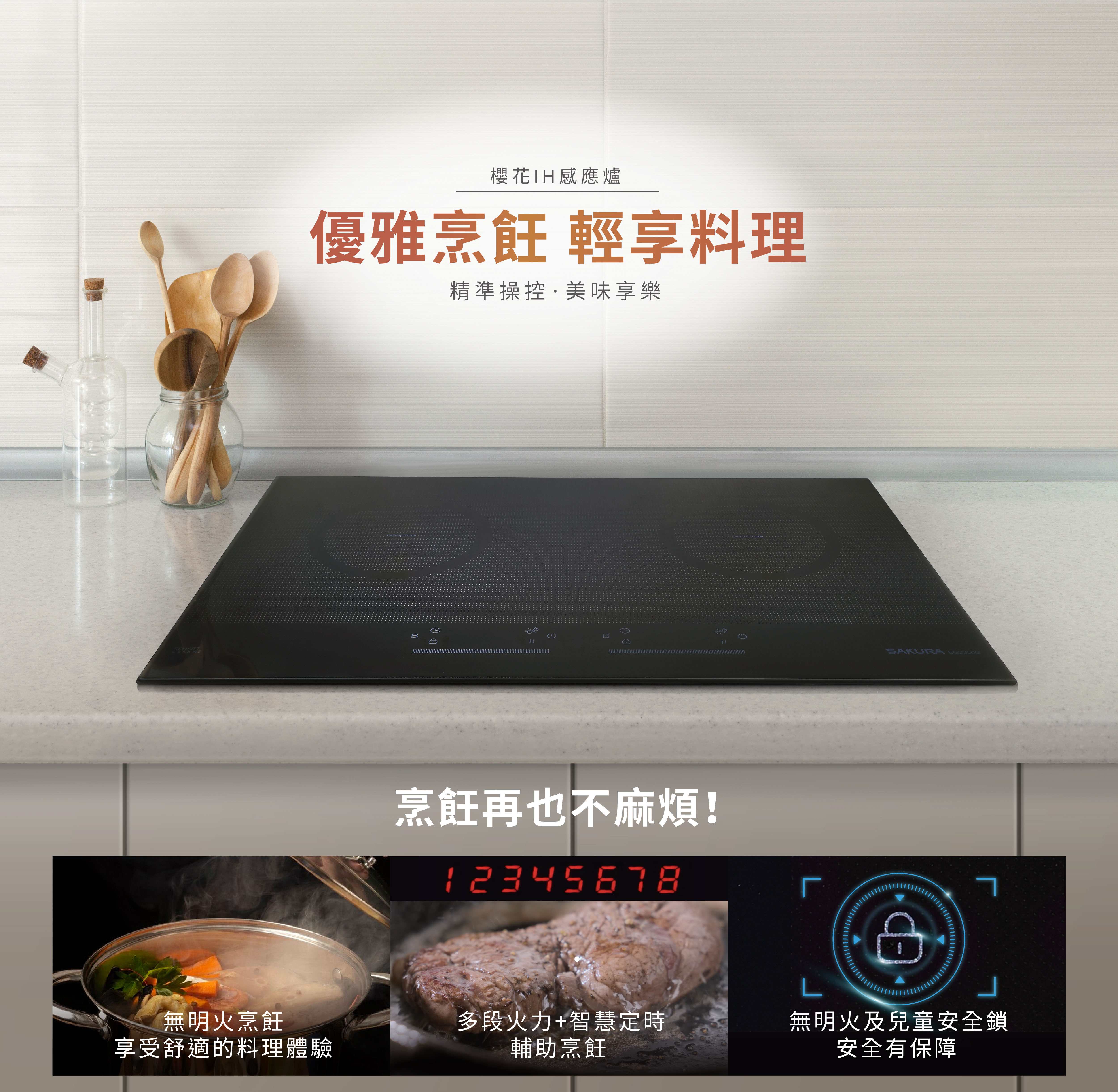 觸控式操作,具8段火力及瞬間強力加熱功能