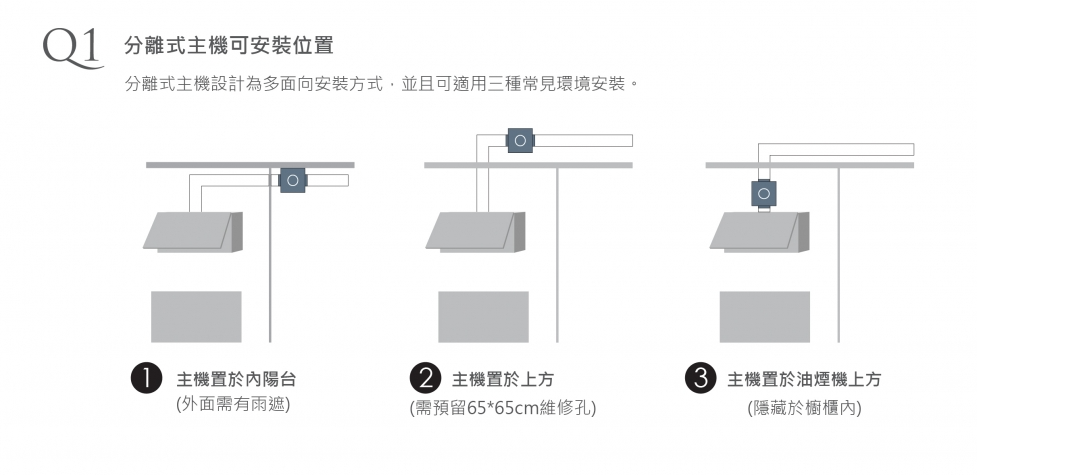 • 隱藏設計,可配合廚具鑲崁門板
