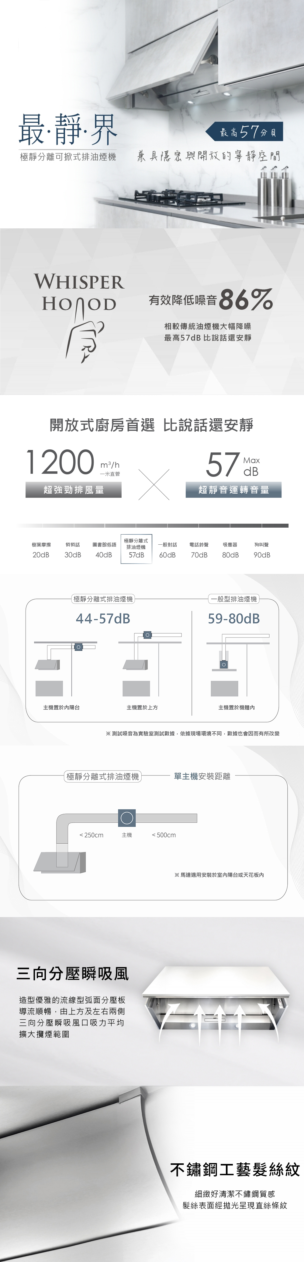 • 首創弧型分壓導流板,三向式吸風口
