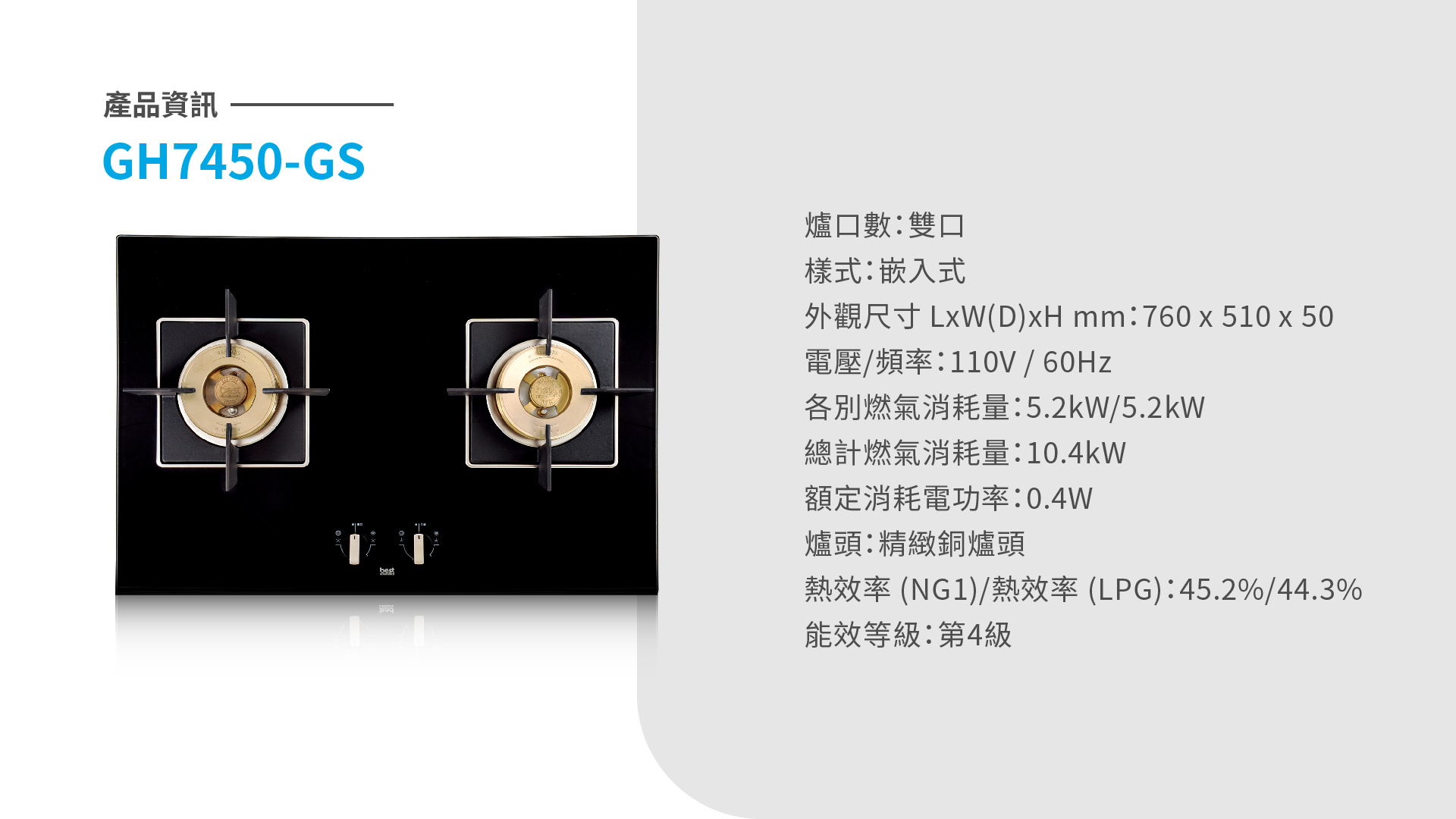 黑玻雙口高效能瓦斯爐GH7450-GS