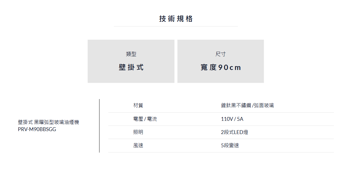 PRV 壁掛式 黑曜弧型玻璃排油煙機 (90cm)