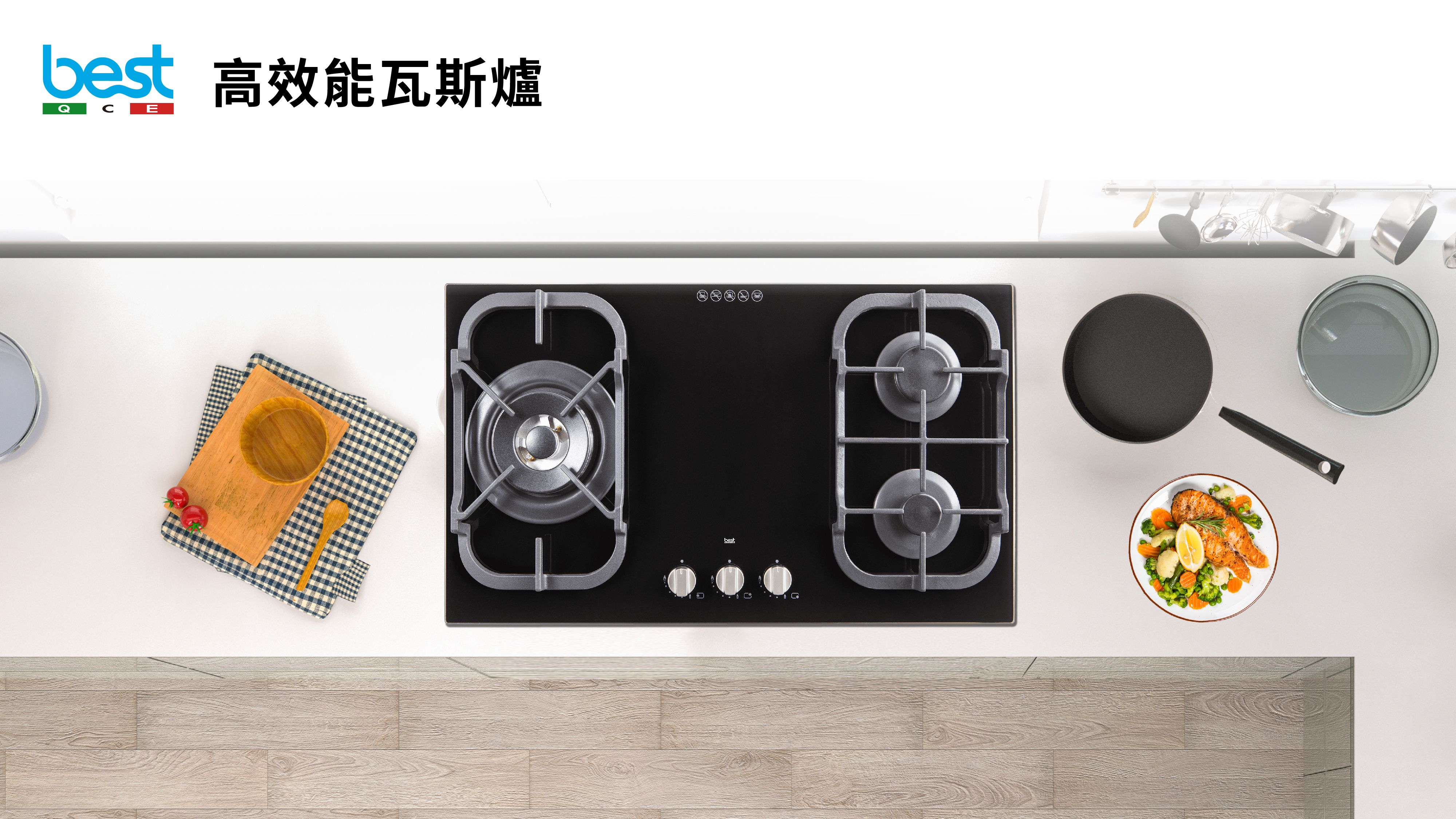 黑玻三口高效能瓦斯爐GH7055-L