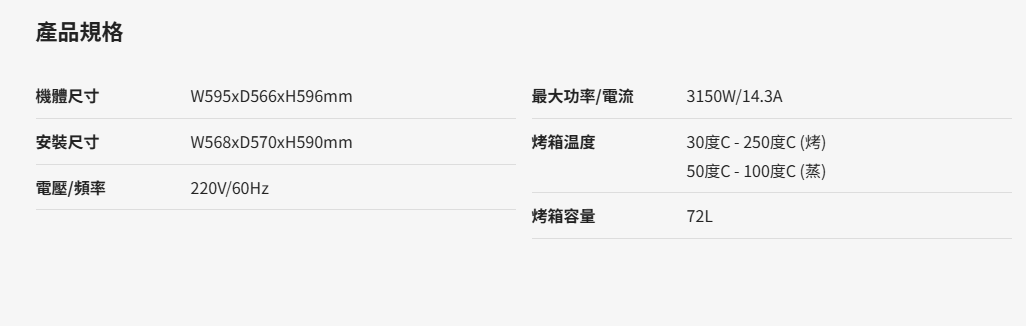 5種蒸烤模式 (3種蒸汽量設定: low, Medium, High)