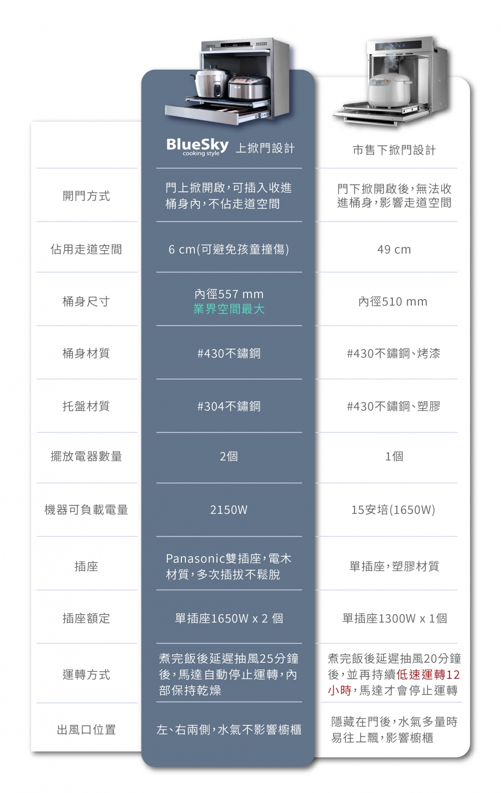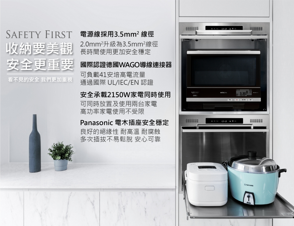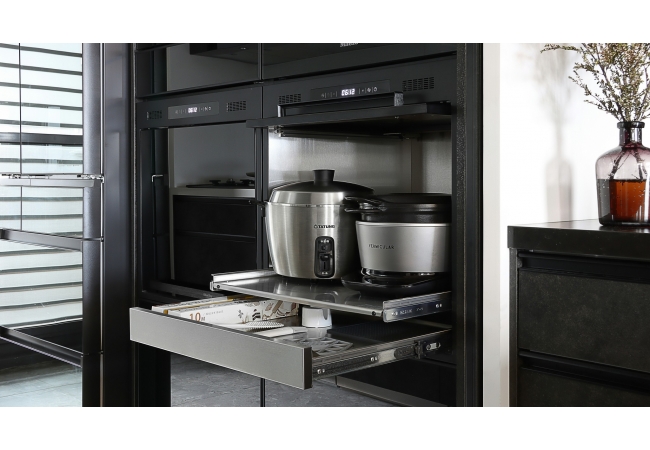 專門收納會產生蒸氣的廚房小家電,智慧雙偵測系統,將熱氣、蒸氣排出櫃外,保持櫃內乾燥避免櫥櫃受潮;