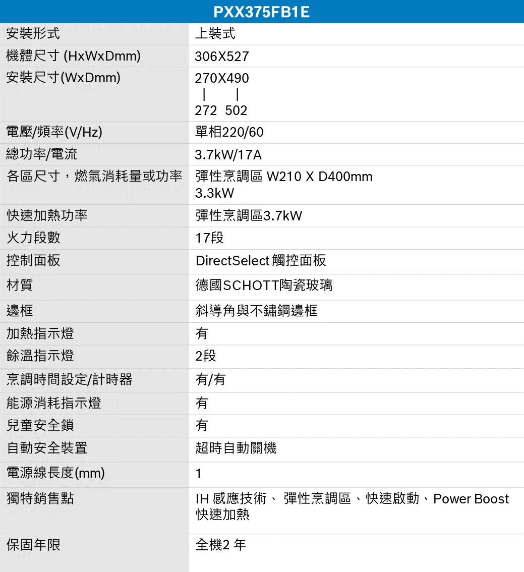 PXX375FB1E 上裝式 感應爐 (30公分)