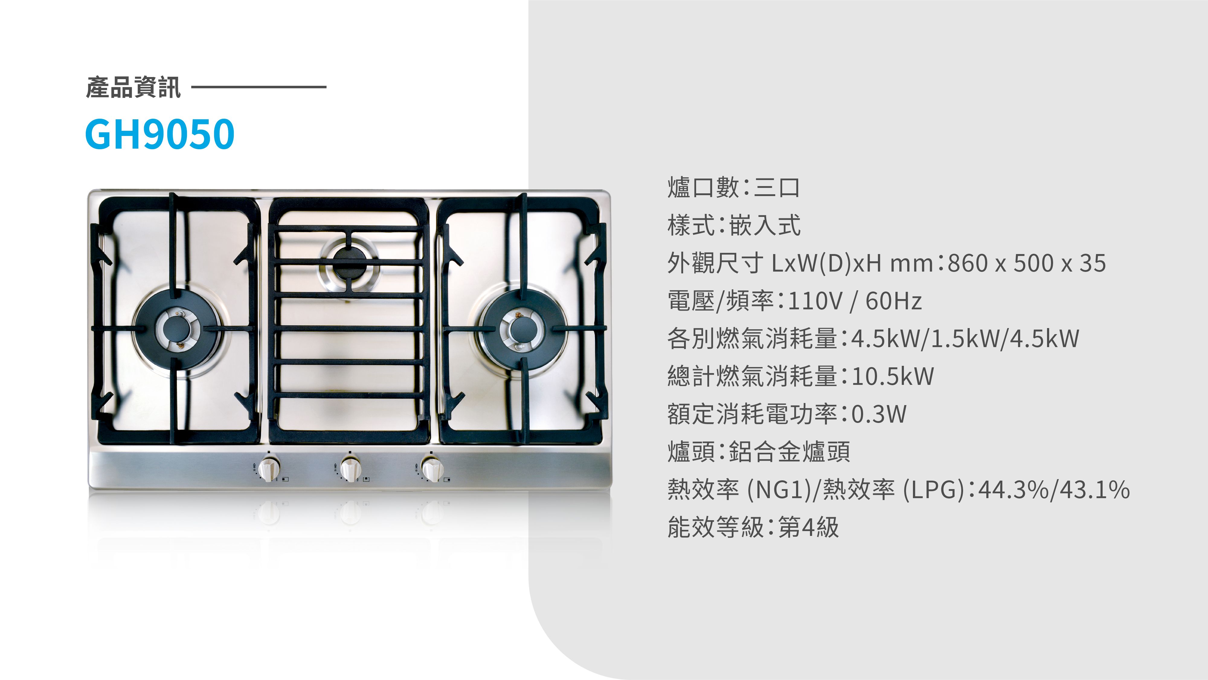 不鏽鋼三口高效能瓦斯爐GH9050
