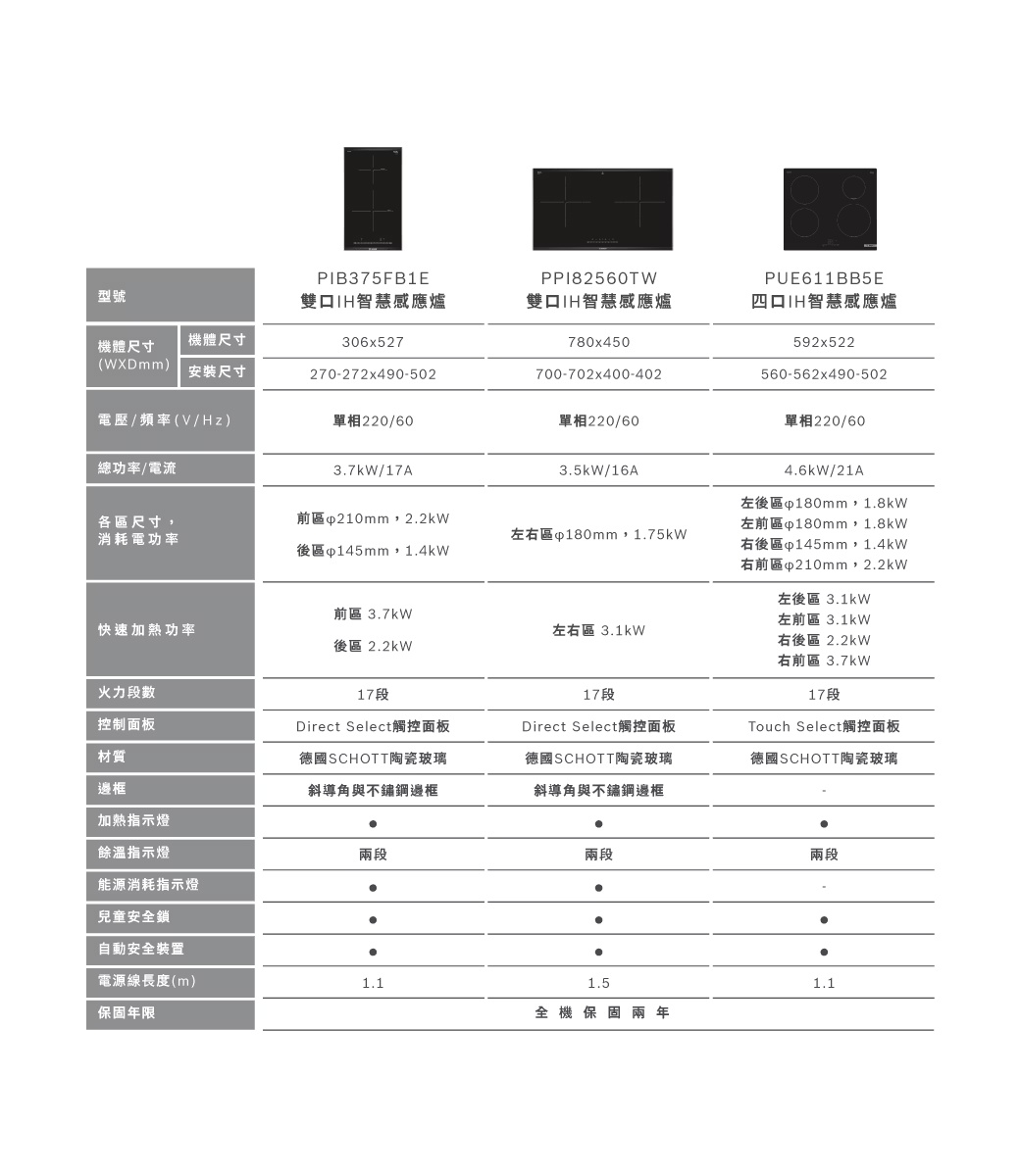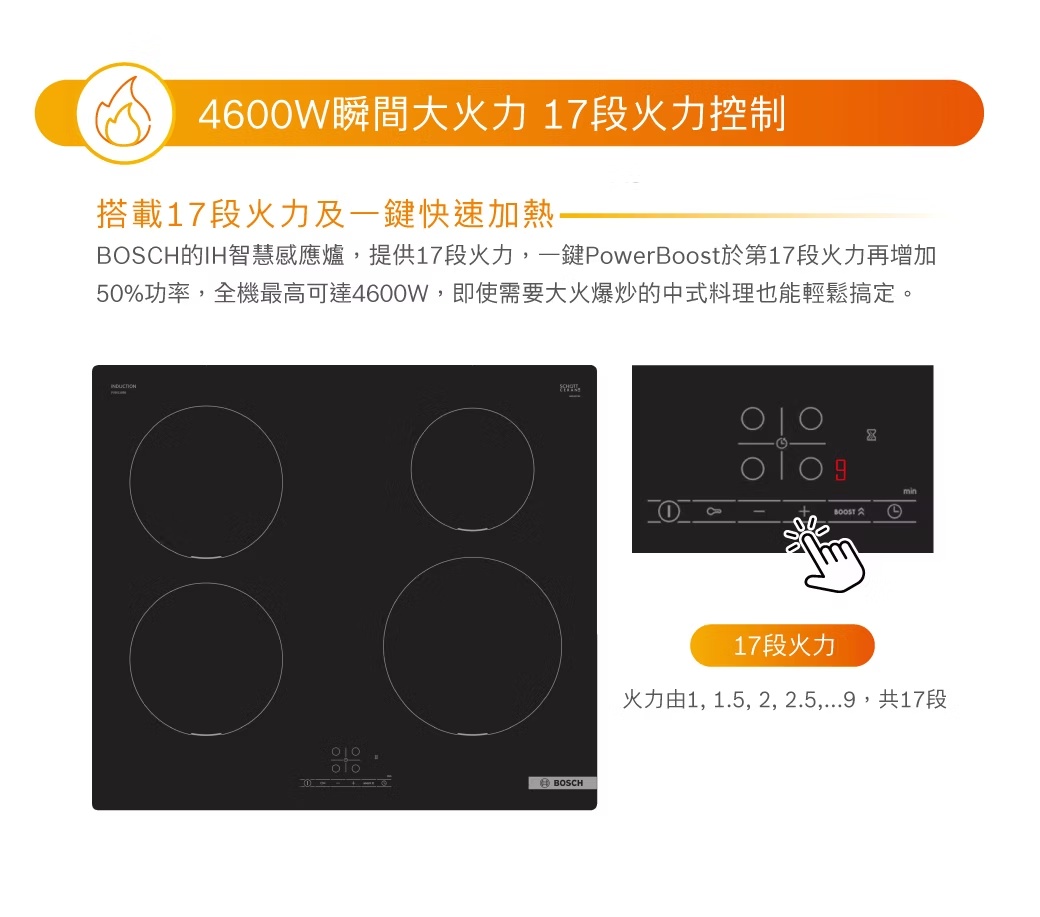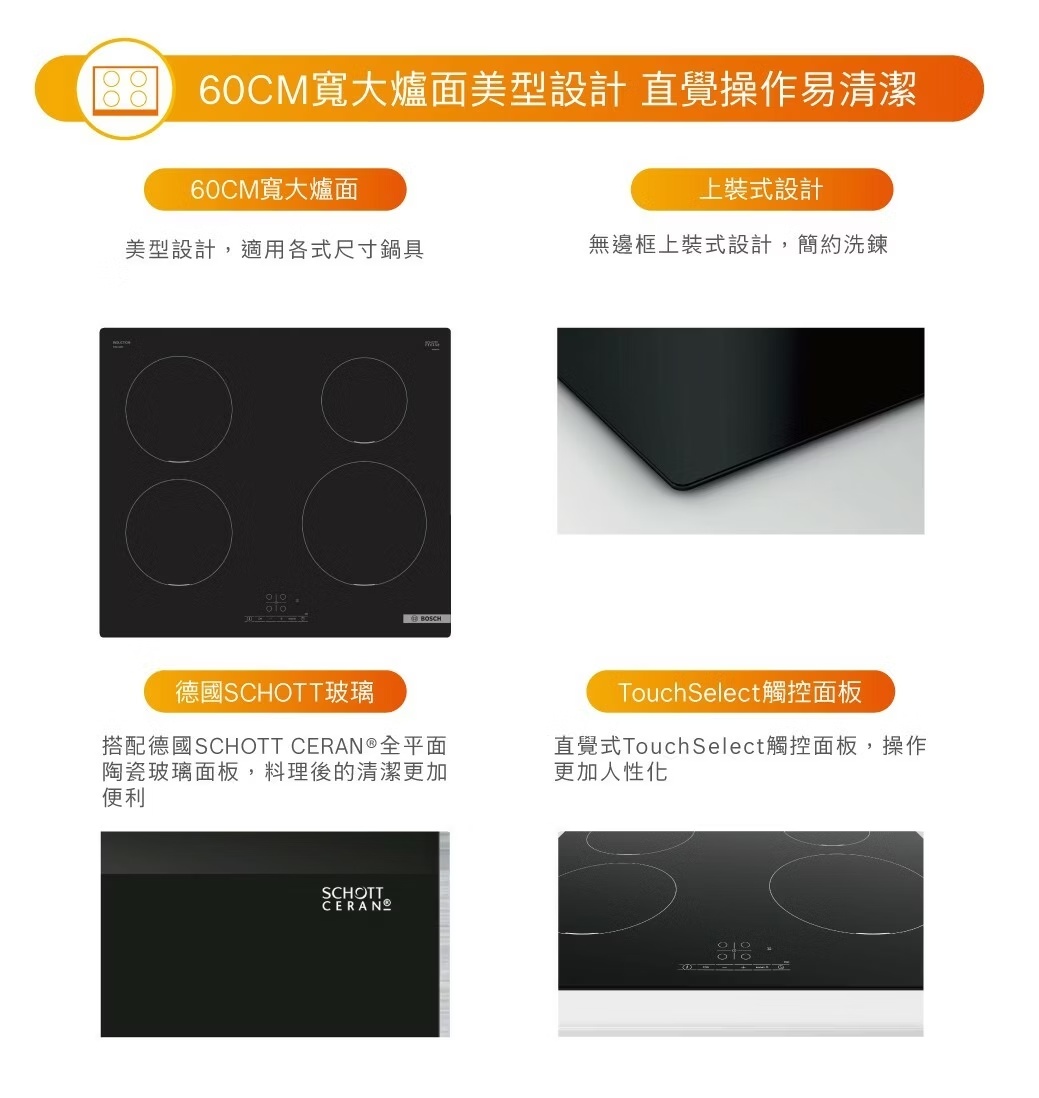 PUE611BB5E 上裝式 四口IH智慧感應爐 (60公分)