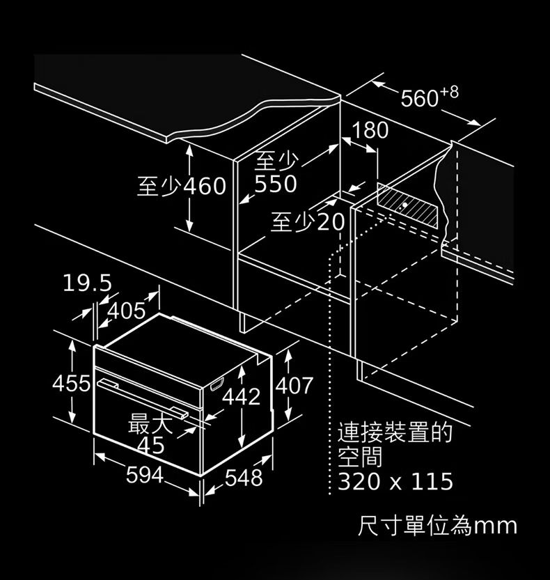 8系列 嵌入式蒸烤爐 60 x 60 cm 極緻黑
