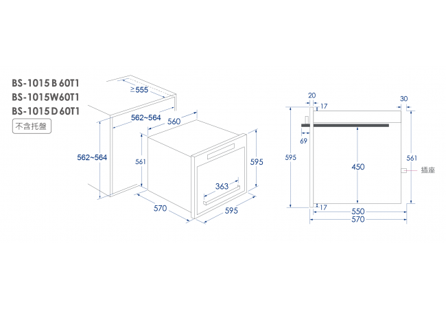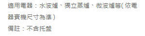 T1適用水波爐、獨立蒸爐、微波爐等高度較高家電。