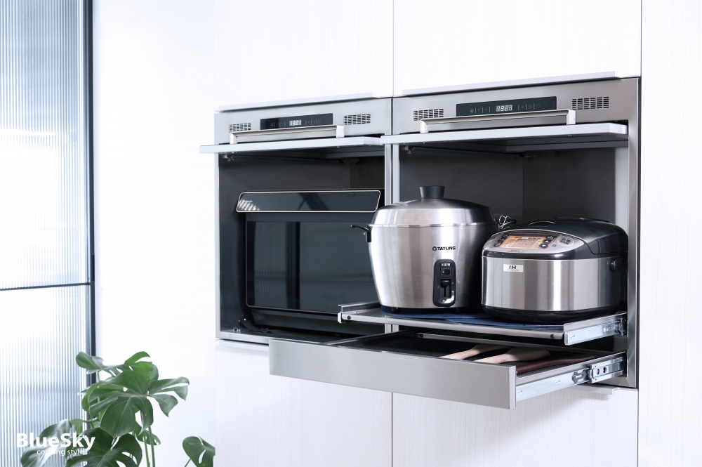 專門收納會產生蒸氣的廚房小家電,智慧雙偵測系統,將熱氣和蒸氣排出櫃外,保持櫃內乾燥避免櫥櫃受潮;