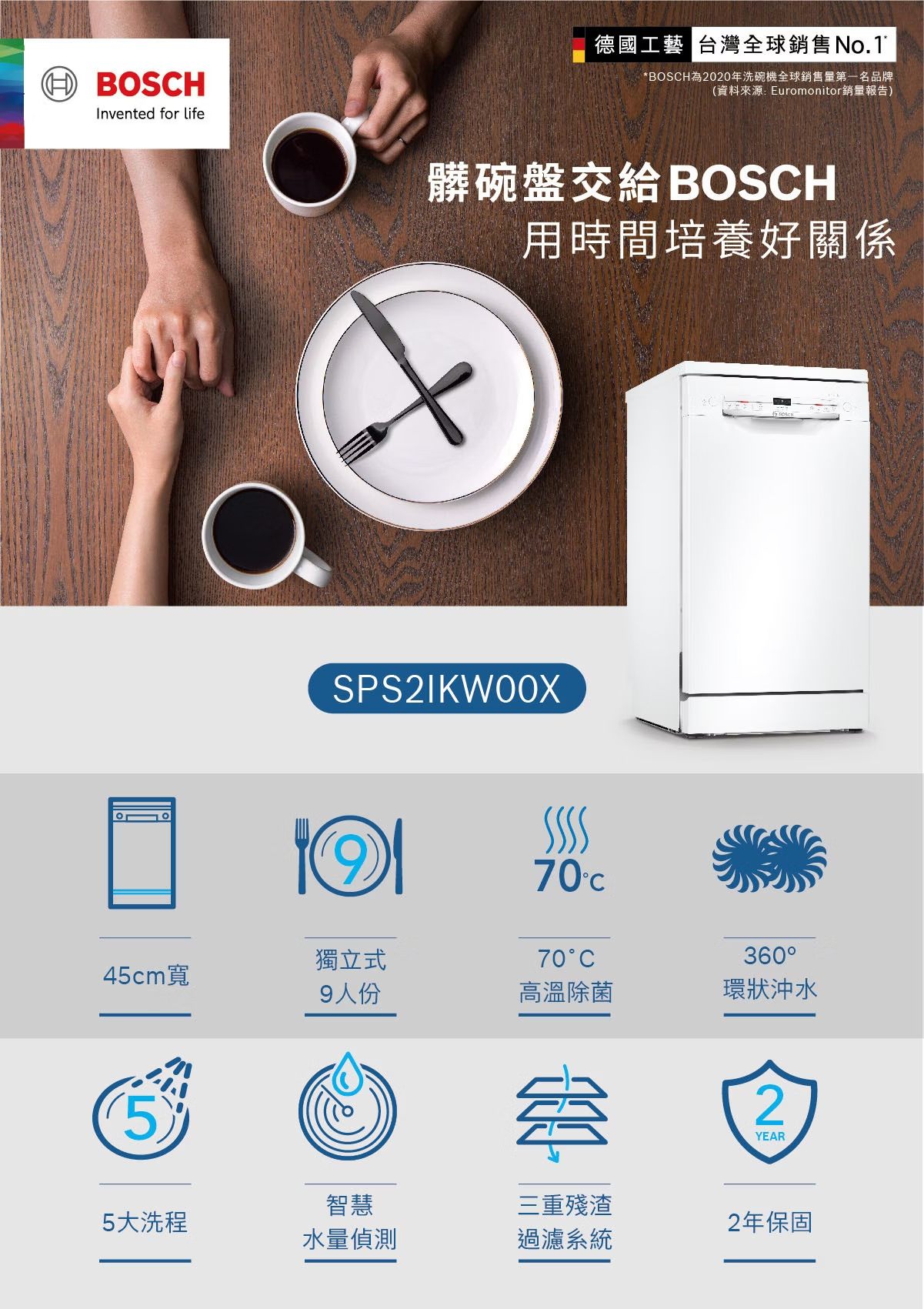 2系列 獨立式洗碗機 45 cm 白色