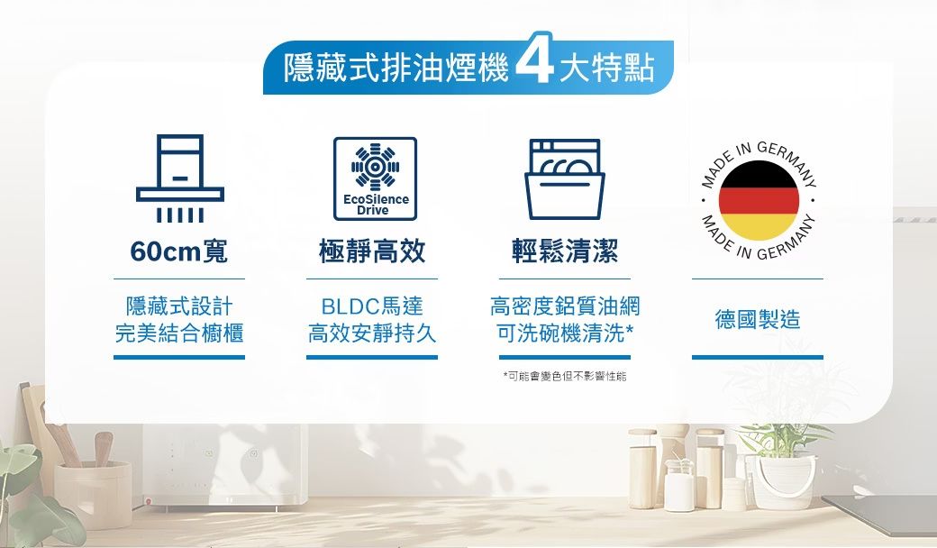 4系列 隱藏式排油煙機 60 cm 金屬銀色