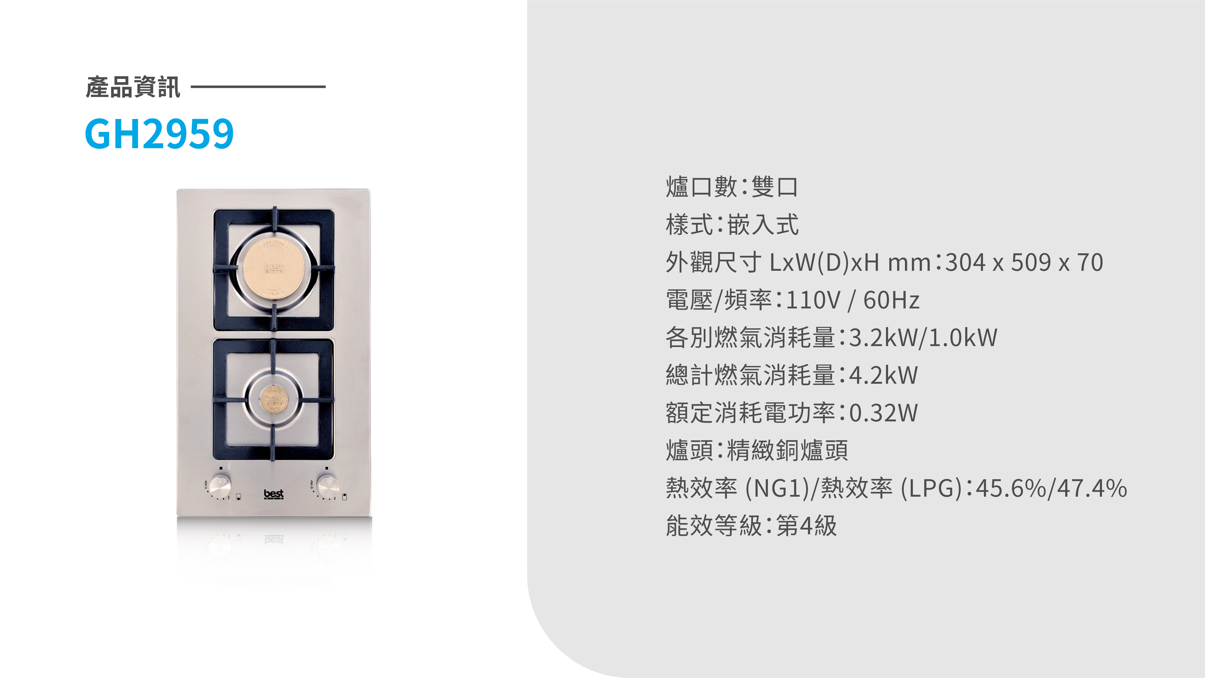 不鏽鋼雙口高效能瓦斯爐GH2959