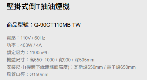 壁掛式倒T抽油煙機