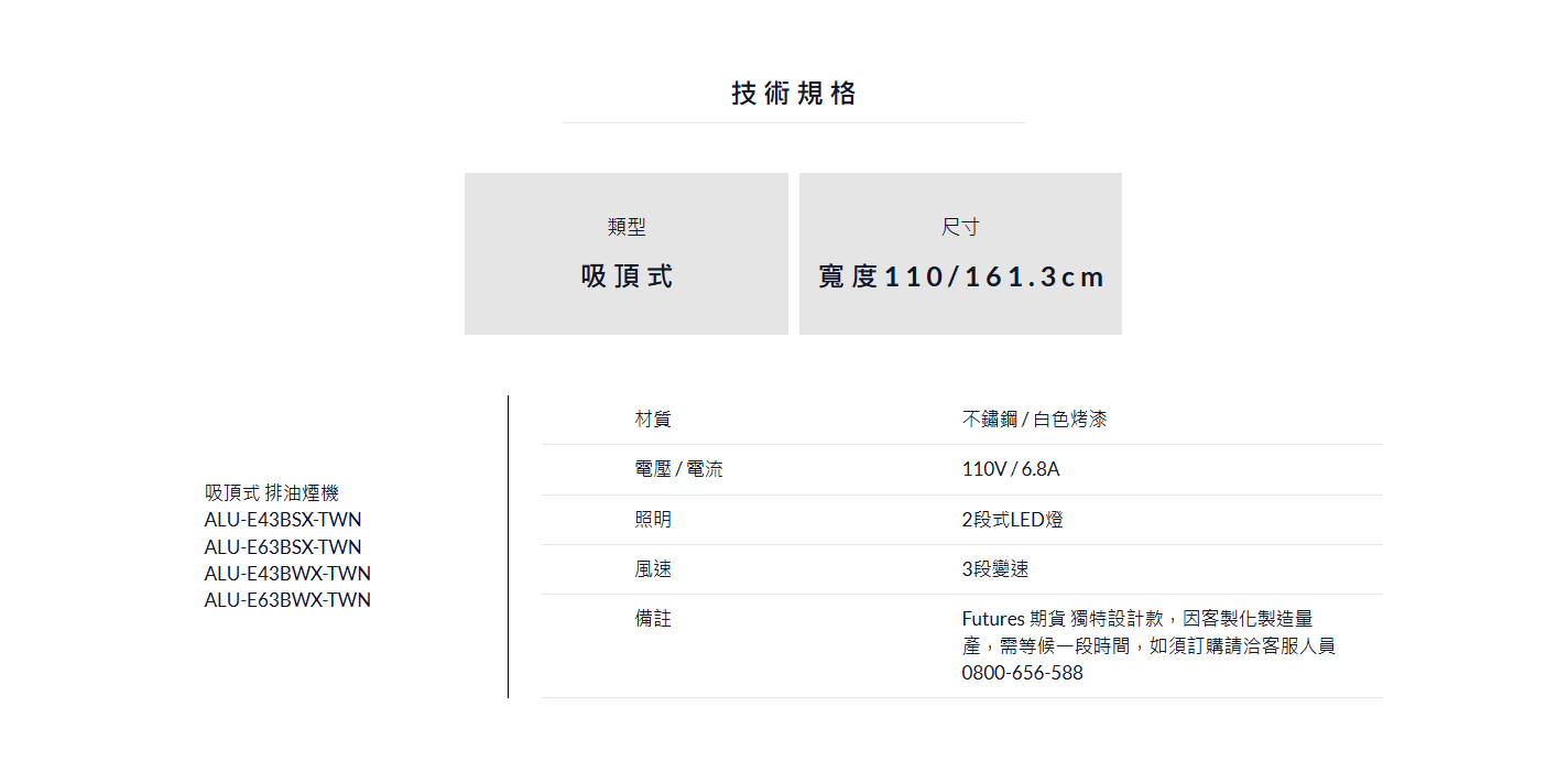 ALU 吸頂式排油煙機 (110cm不鏽鋼)