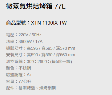 微蒸氣烘焙烤箱 77L