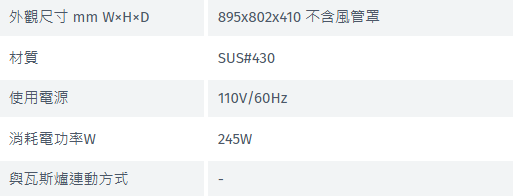榮獲節能標章之排油煙機