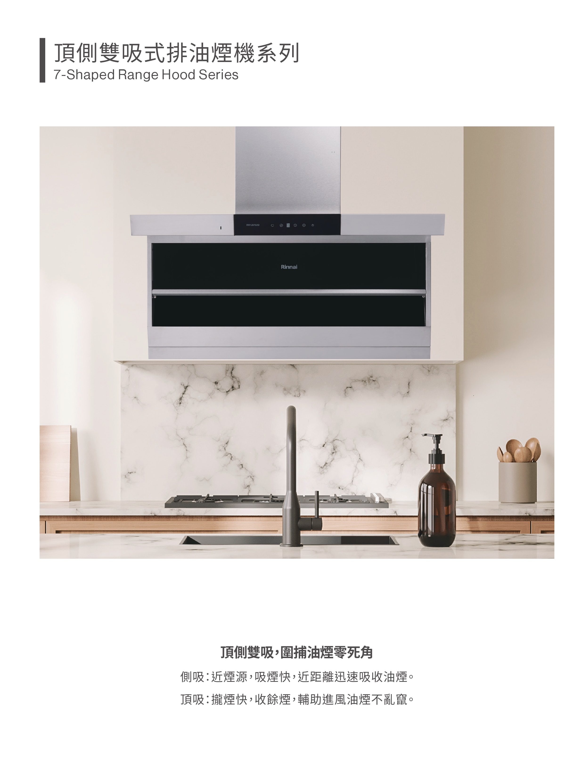 側吸:近煙源,吸煙快,近距離吸收油煙