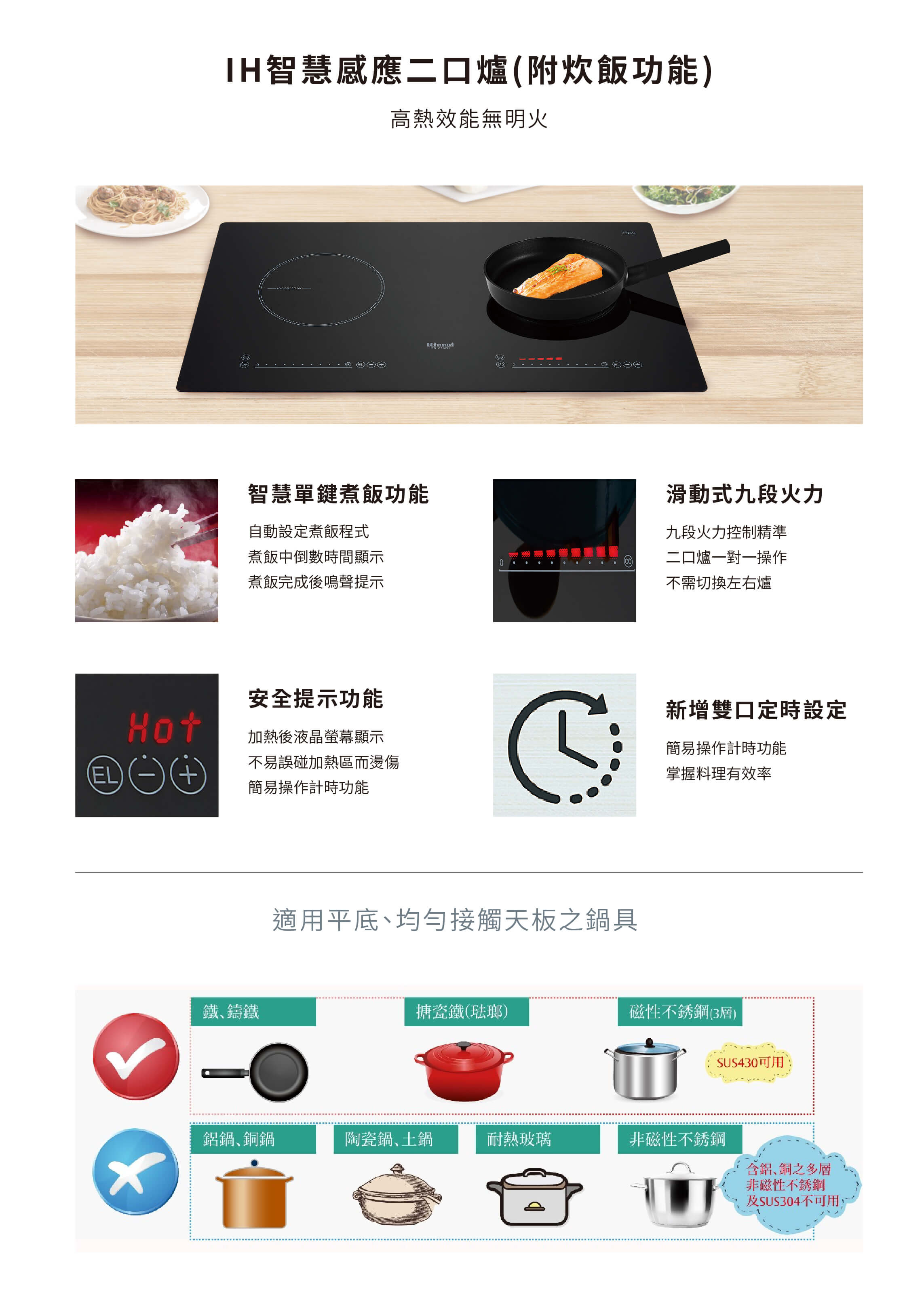 高熱效率,無明火料理更安全