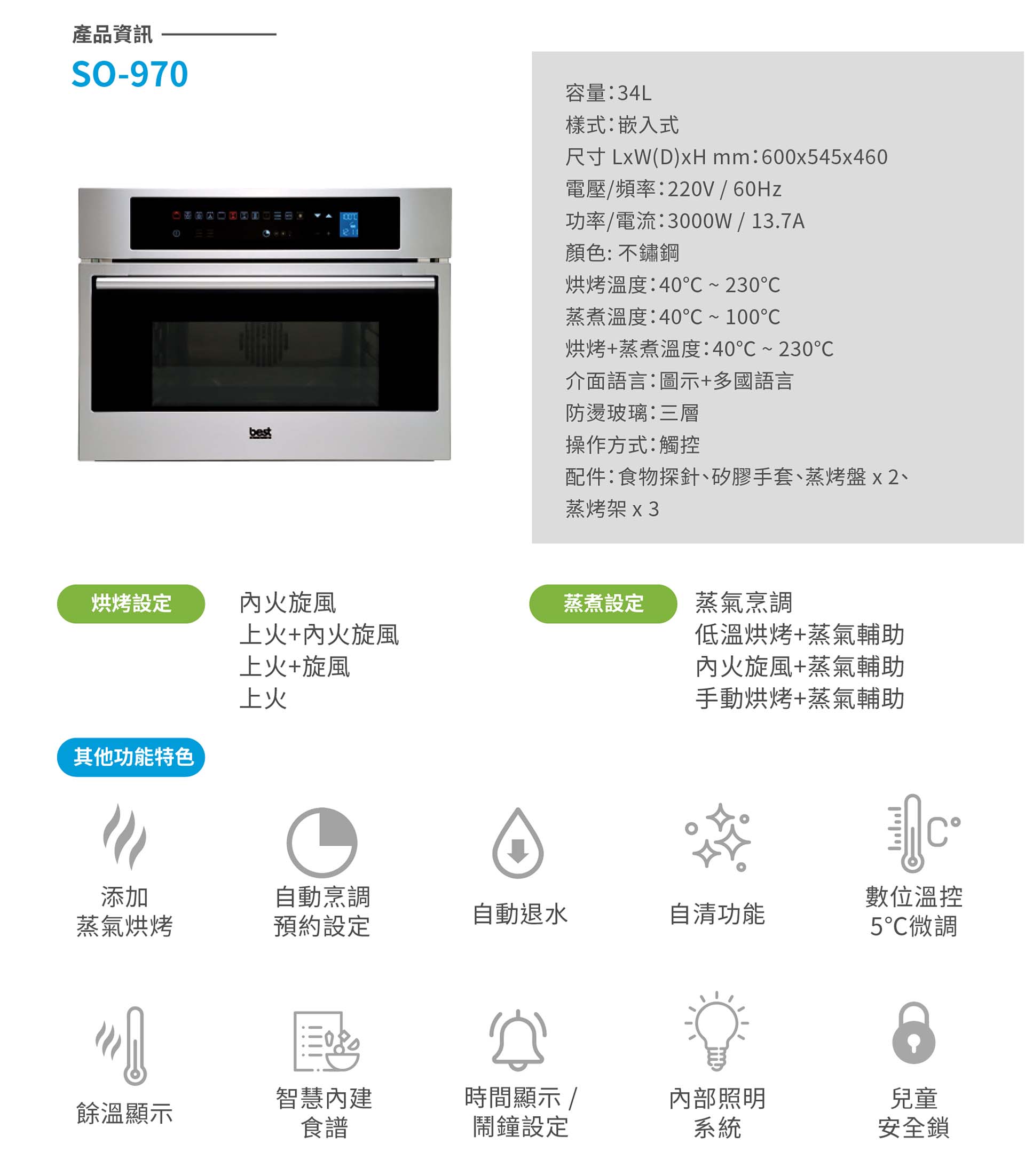 智慧型蒸烤爐SO-970