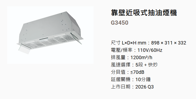 best隱藏式抽油煙機G3450