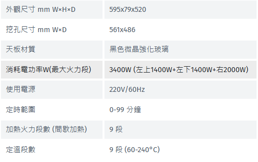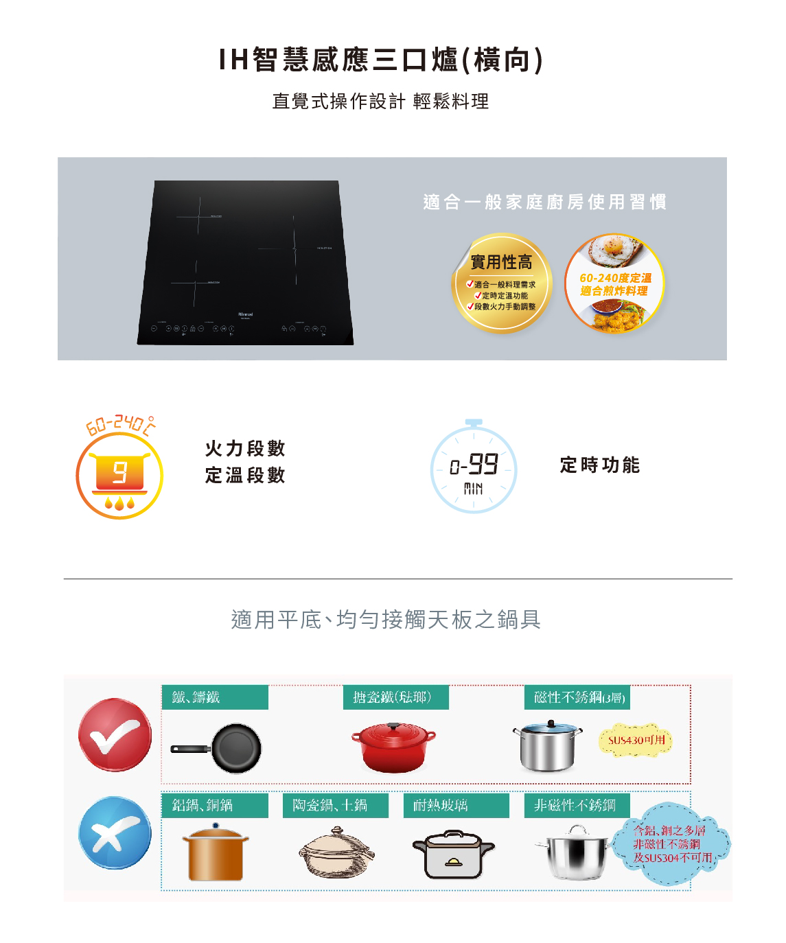 三口加熱區,大小選擇,實用性高,適合一般料理需求