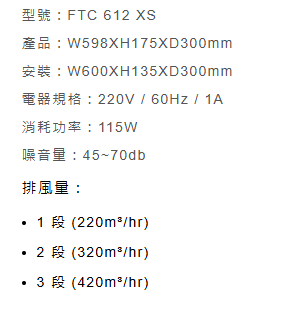 瑞士 FRANKE 抽取式排煙機 FTC 612 XS