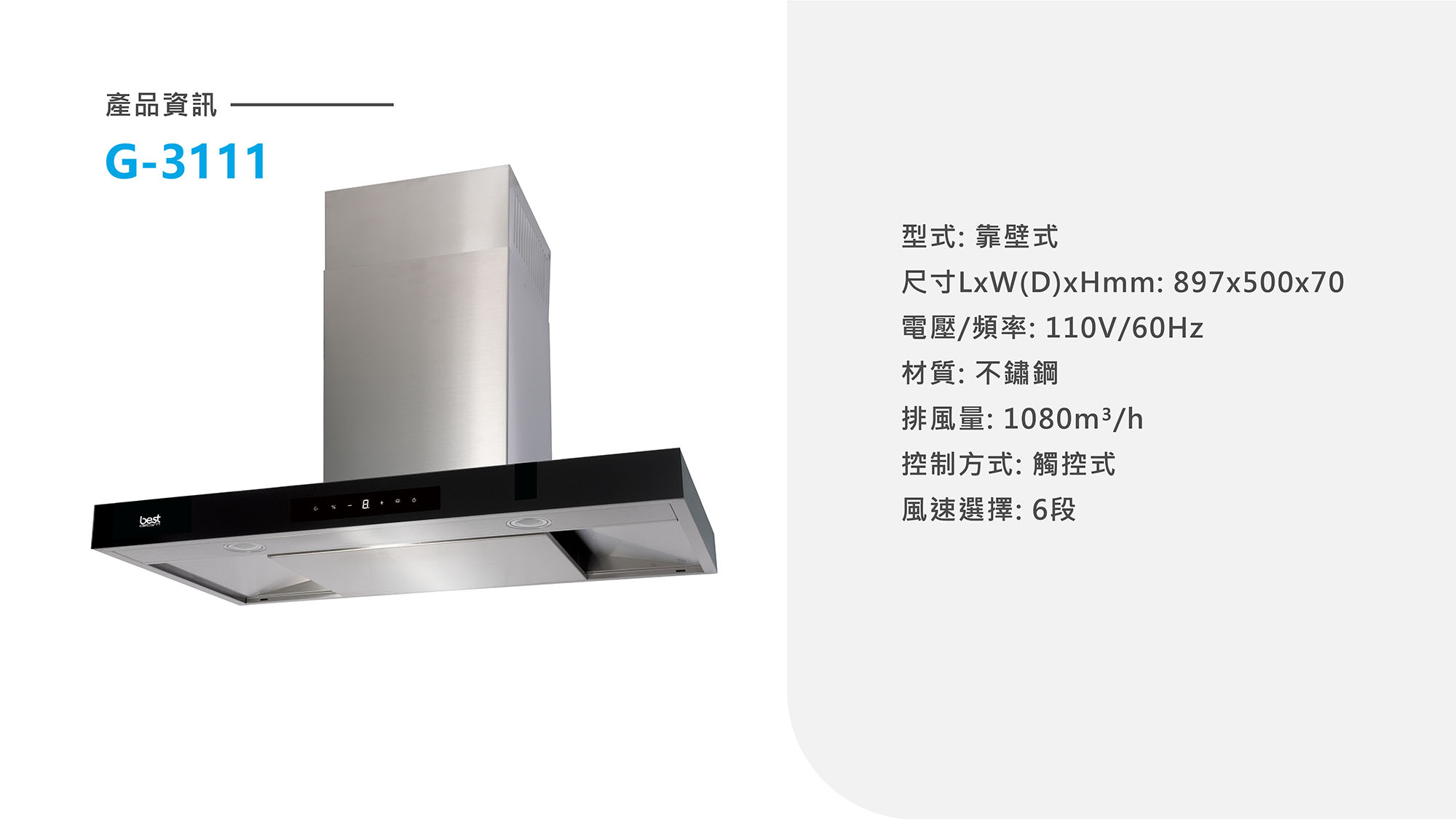 ONE TOUCH智能分離式倒T抽油煙機G-3111