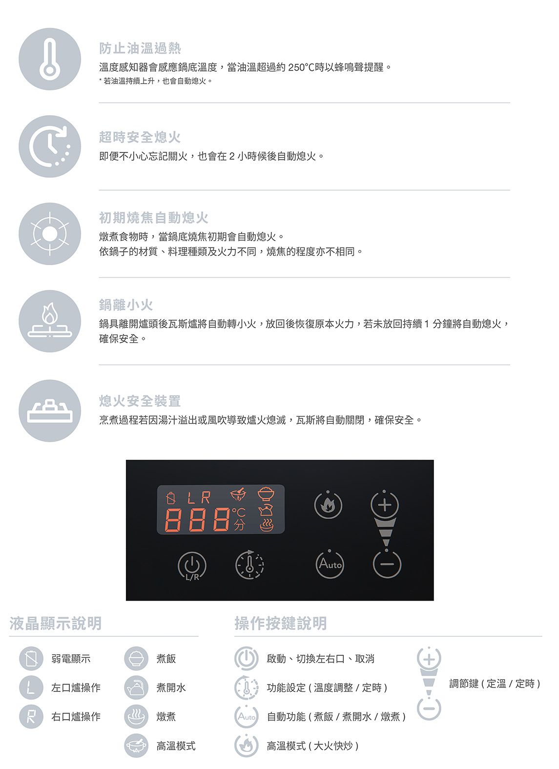 ※小爐口無以上功能,僅搭載熄火安全裝置