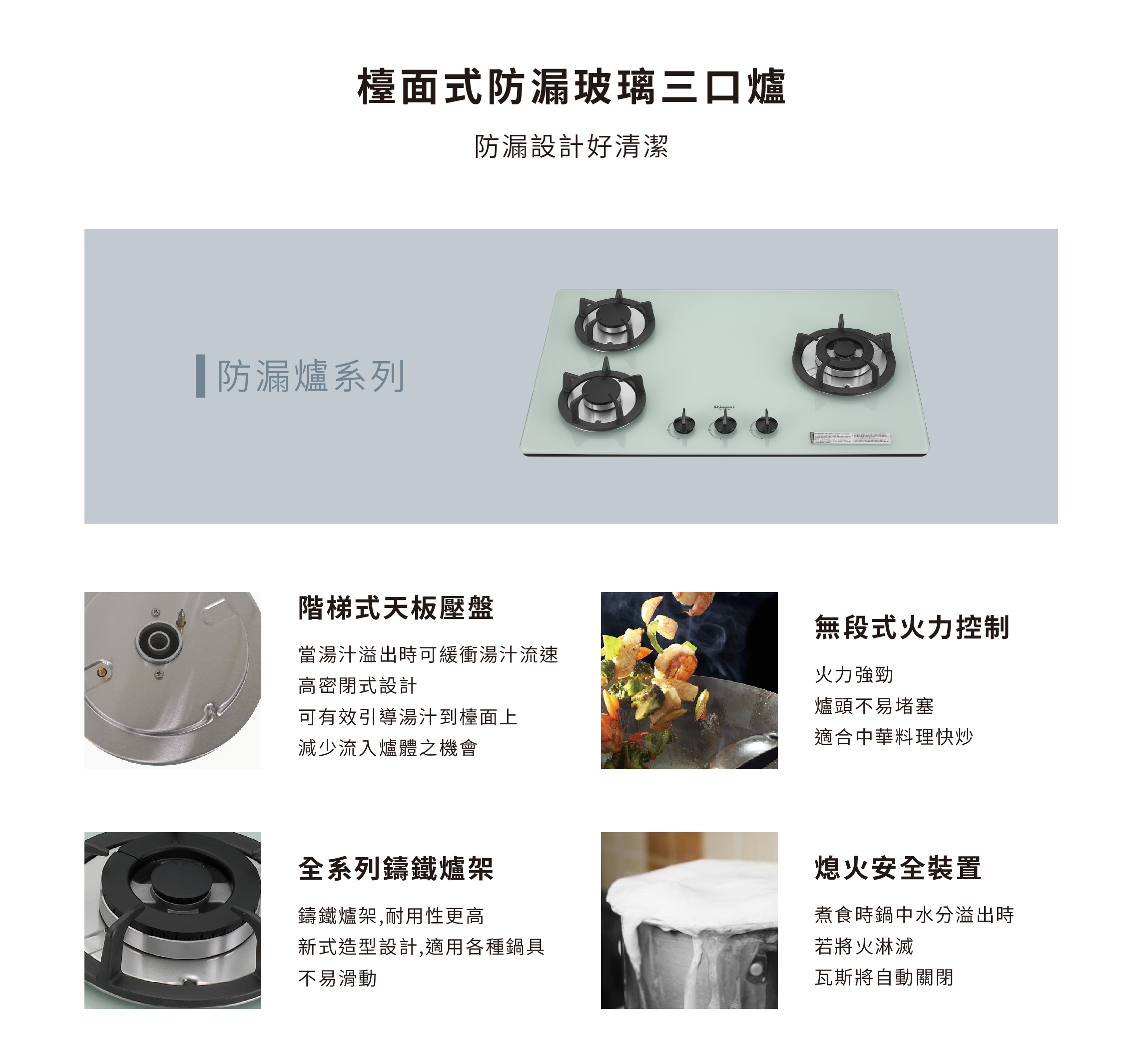 檯面式防漏玻璃三口爐