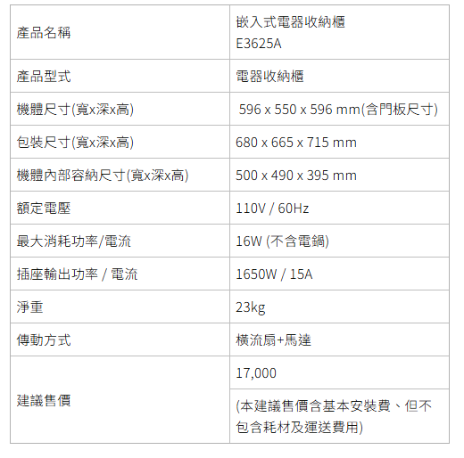 嵌入式收納設計,適合安裝於高身櫃與其他電器完美搭配