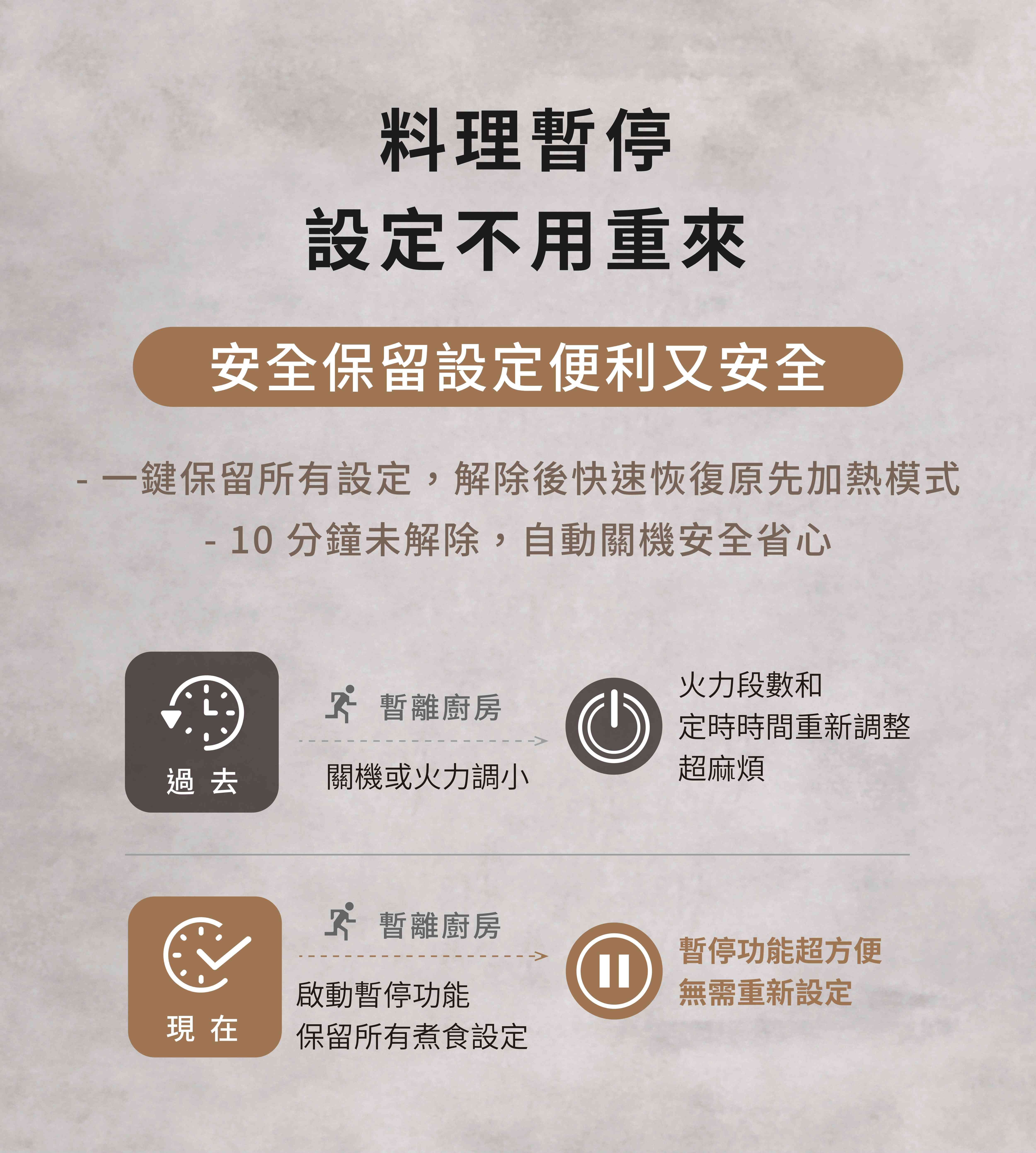 一鍵暫停功能,暫時離開安全便利