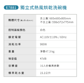 獨立式熱風烘乾洗碗機