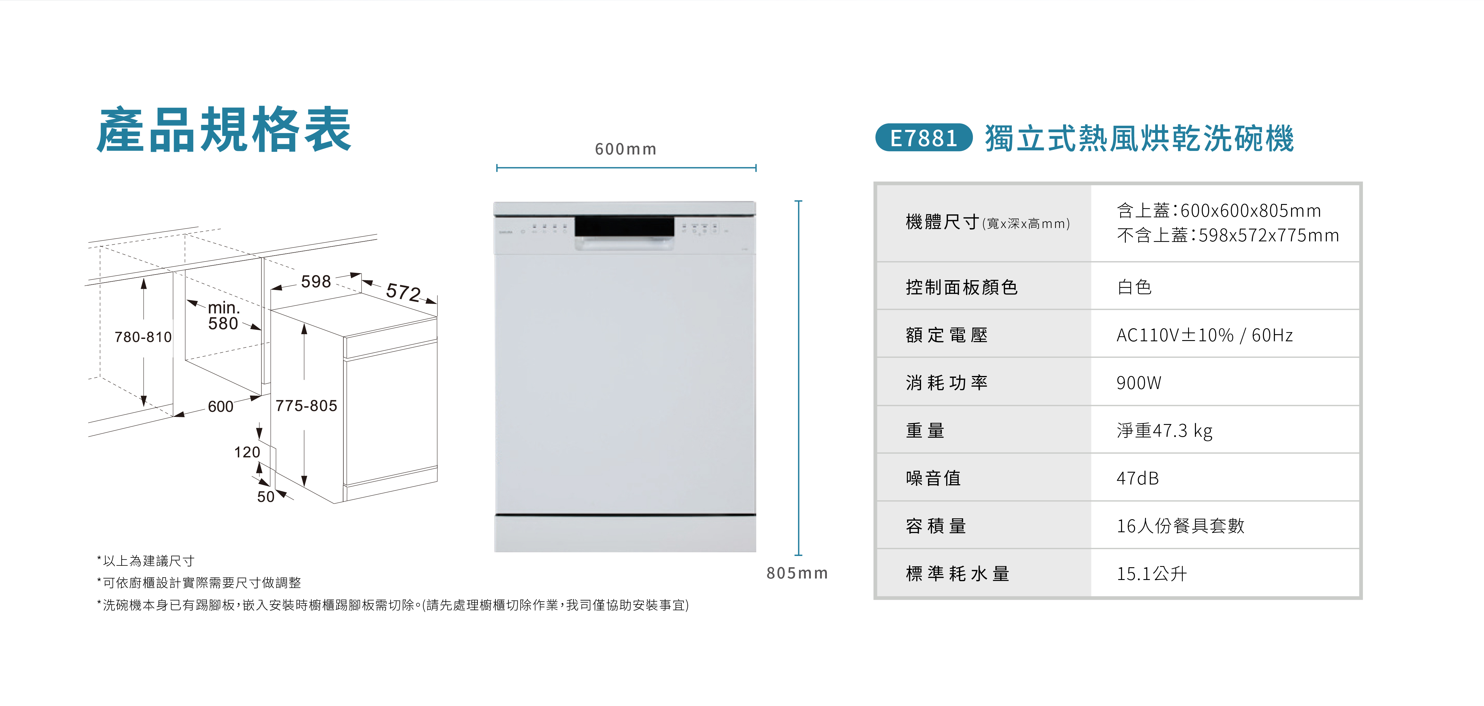 獨立擺放/嵌入櫥櫃兩用