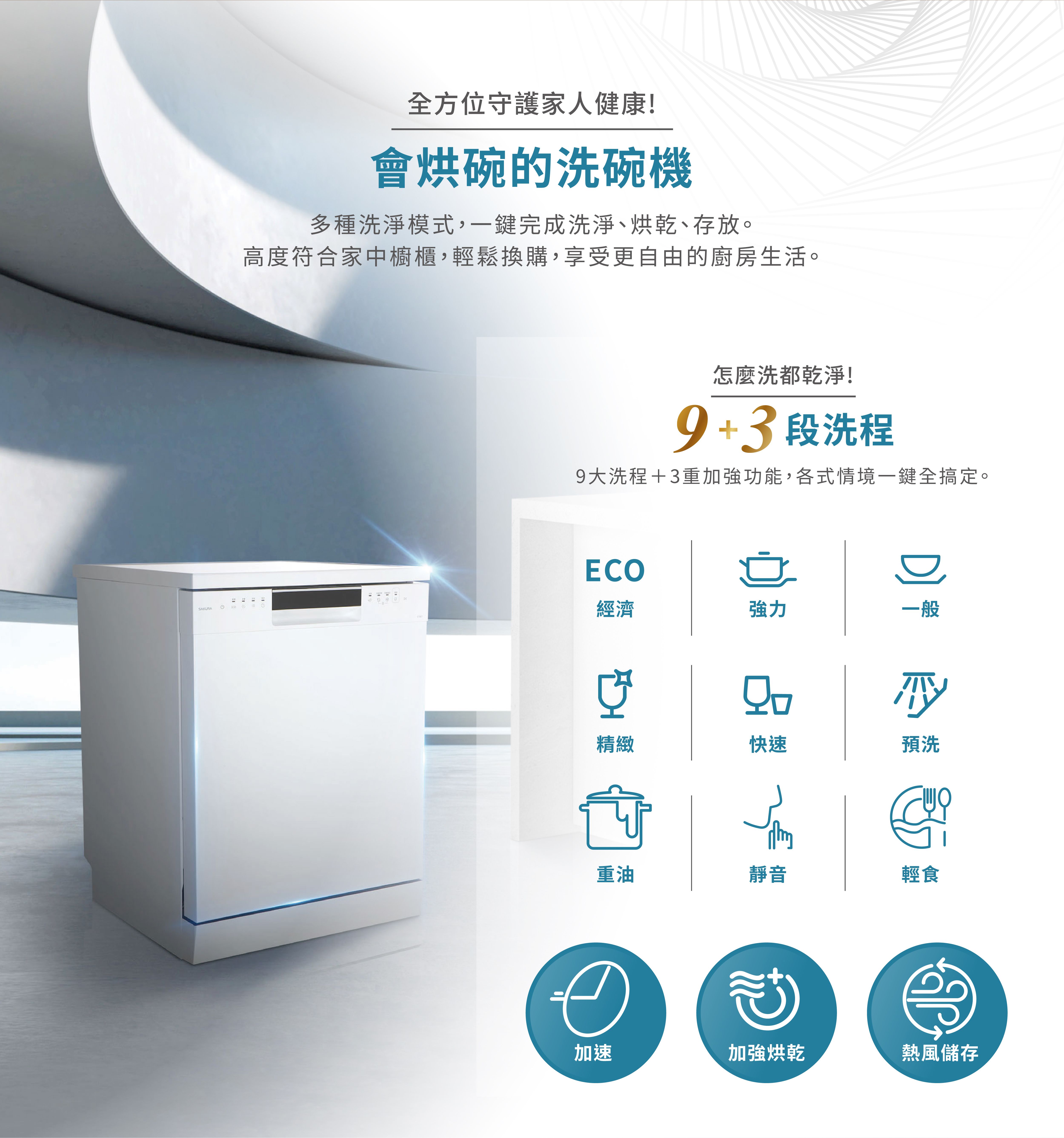 洗程結束自動熱風烘乾,加強碗盤乾燥效果