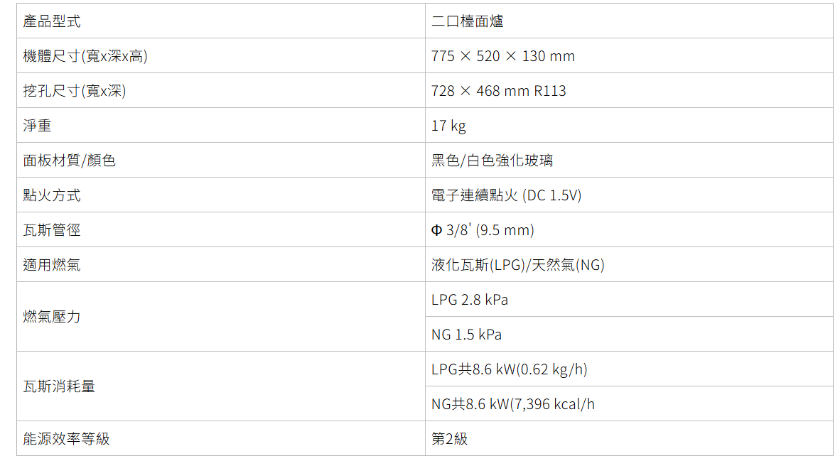 二口大面板易清檯面爐