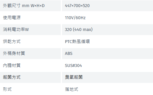 強化抽屜式結構日本溫控系統PTC陶瓷電熱系統臭氧殺菌滾珠滑軌,門板可整組取出液晶顯示操作面板鏡面玻璃面板外桶身材質:ABS內膽材質:SUS#304