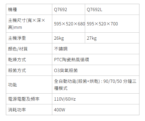 O3臭氧殺菌+PTC熱風內循環烘乾,碗盤乾淨無慮