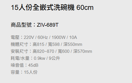 15人份全嵌式洗碗機 60cm