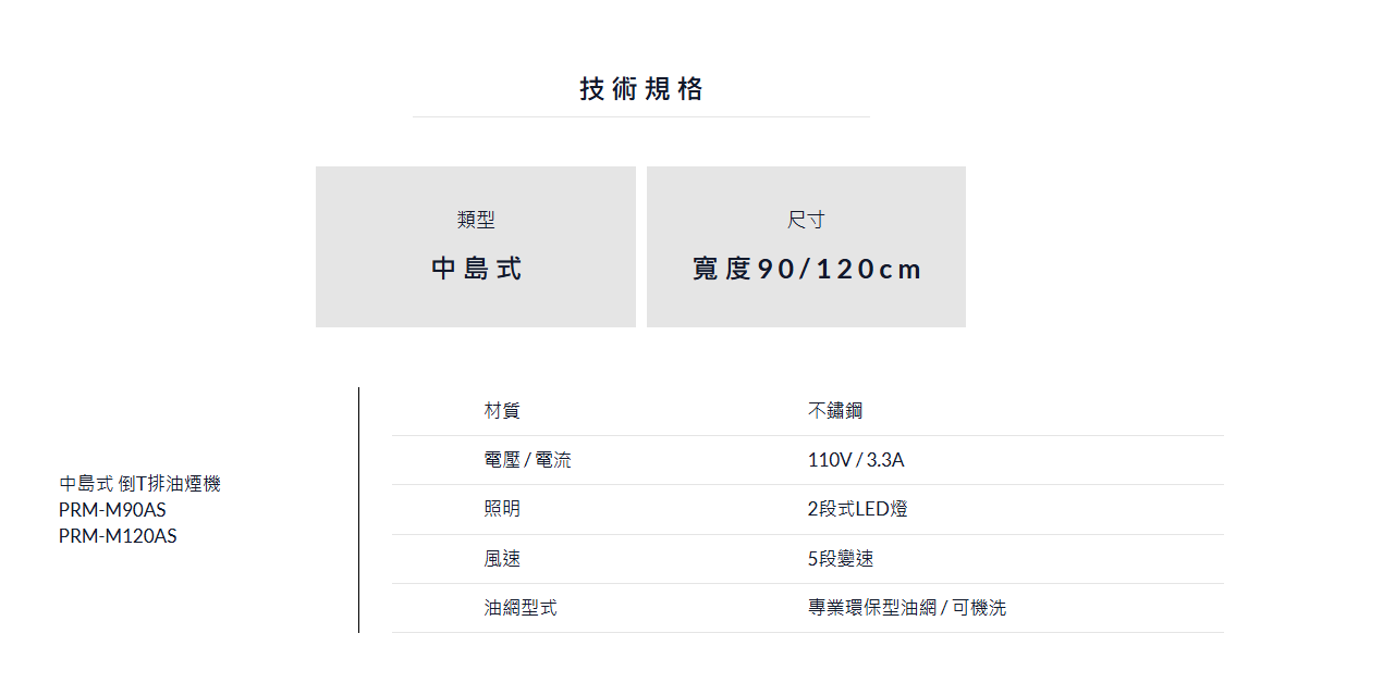 PRM 中島式 倒T排油煙機 (90cm)