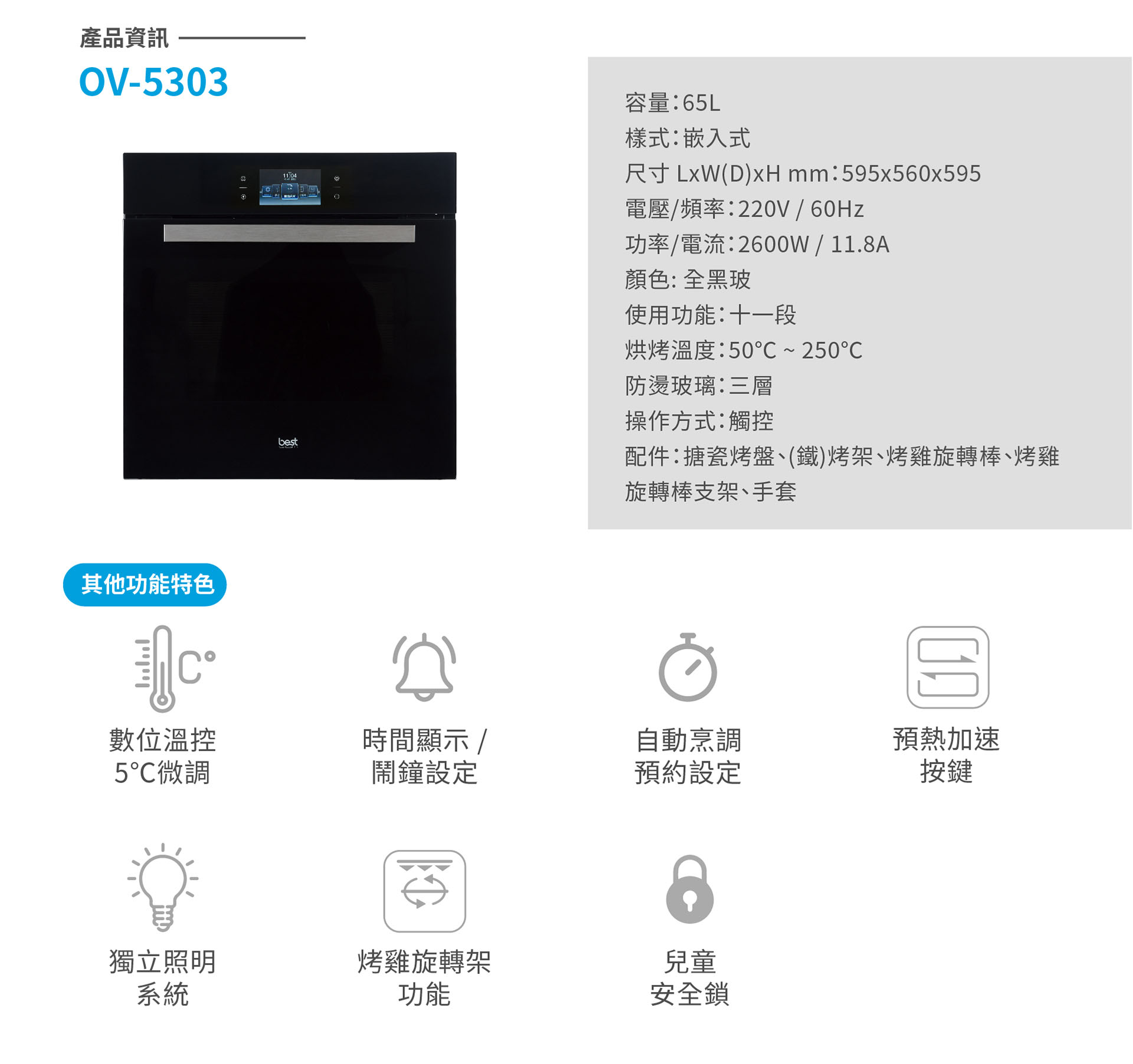 5吋TFT 3D旋風烤箱OV-5303