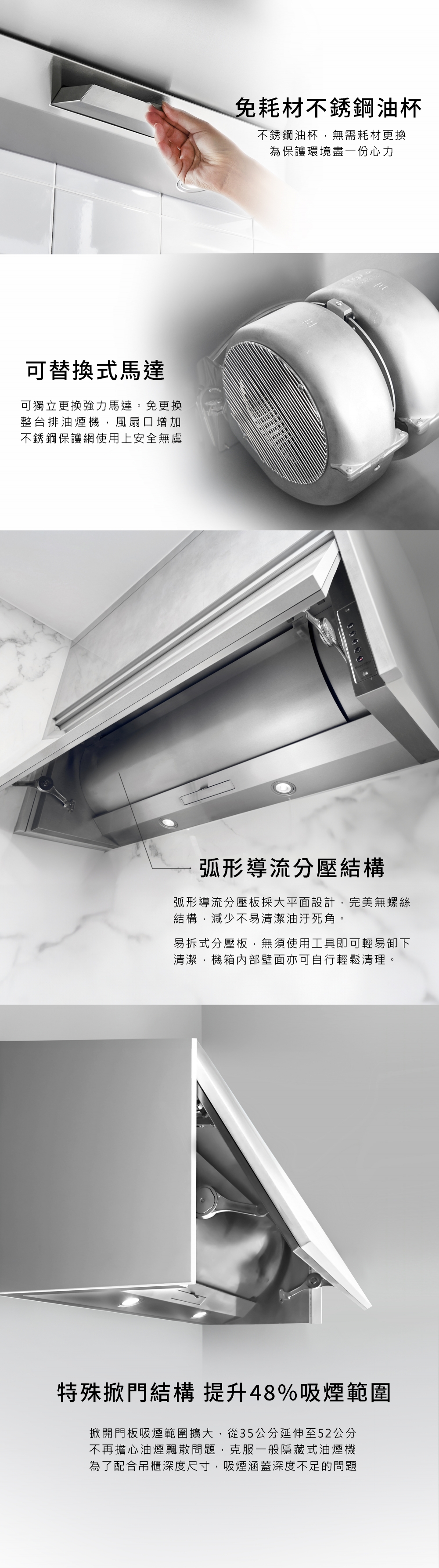 • 門片亦為擋煙板,超大攬煙範圍