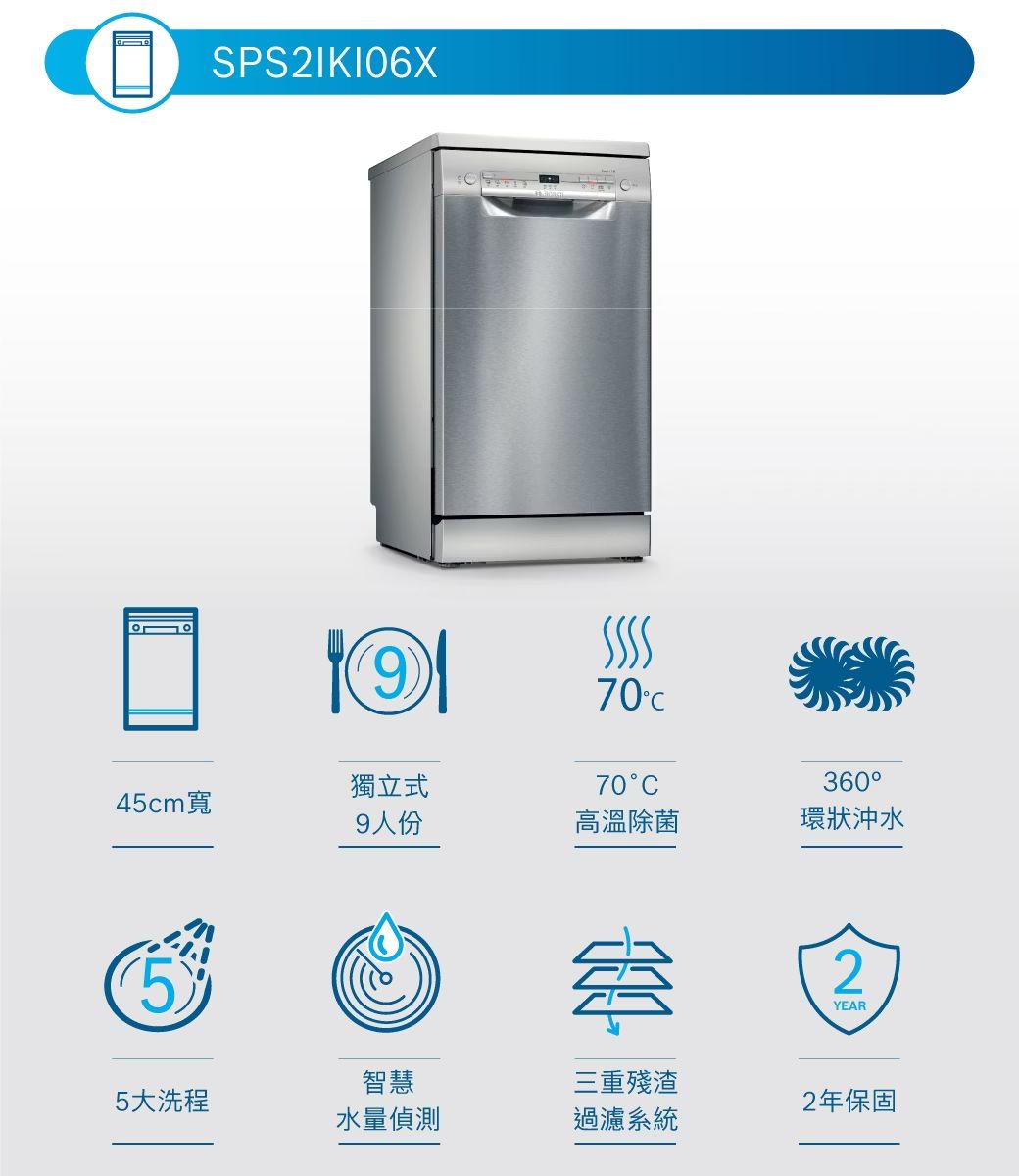 2系列 獨立式洗碗機 45 cm 不鏽鋼色